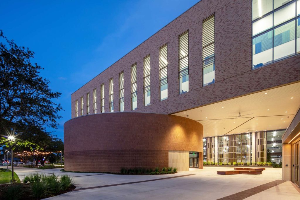 This three-story 21st Century Classroom Building houses 2,200 general purpose classroom seats in ten classrooms. Located across two levels of the building. Instructional spaces range in size from 600-seat in-the-round lecture halls to 72-seat learning studios. On the top floor are offices for three instructional support groups – Center for Teaching Excellence, Instructional Media Services and Instructional Technology. This building contains: